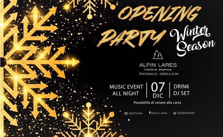 Alpin Lares riapre le porte del suo ristoro per una nuova e bellissima stagione invernale 2019-20, e per ripartire alla grande vi invita sabato 7 dicembre al suo "Opening Party"!